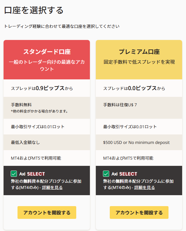 | 項目/口座タイプ | スタンダード口座 | プレミアム口座 |