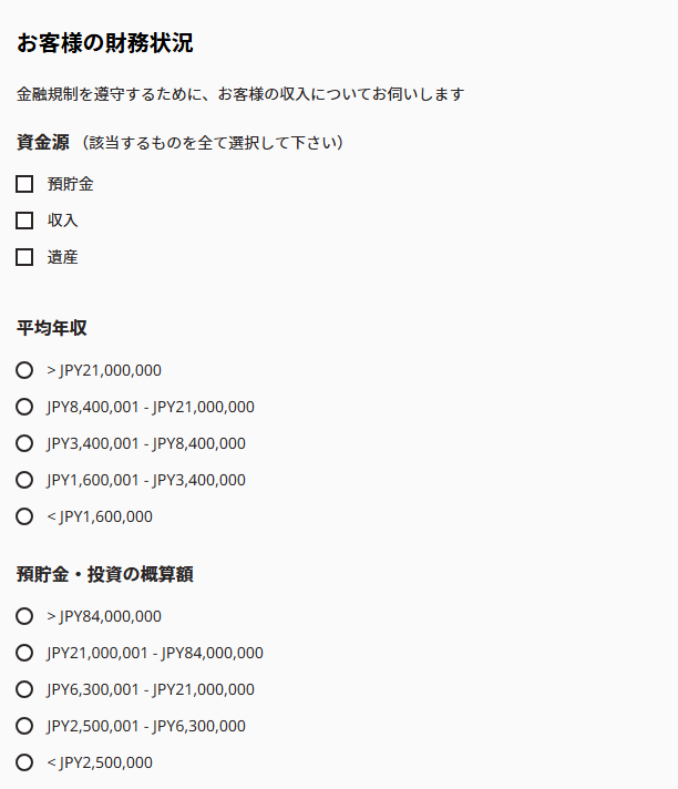 プレミアム口座は500ドル以上の入金・取引手数料が必要になるため、まずはスタンダード口座を開設するのがおすすめです。
