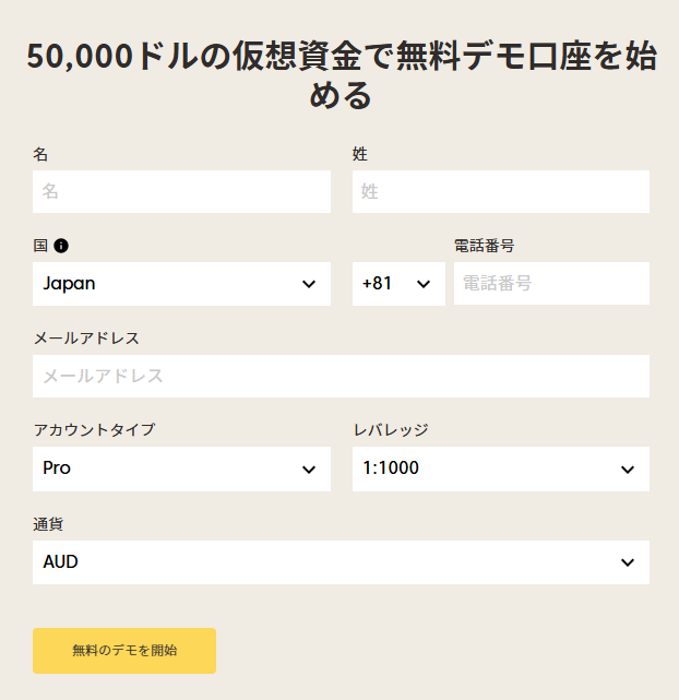 Axi(アクシ)でデモ口座を開設する方法は下記の通りです。