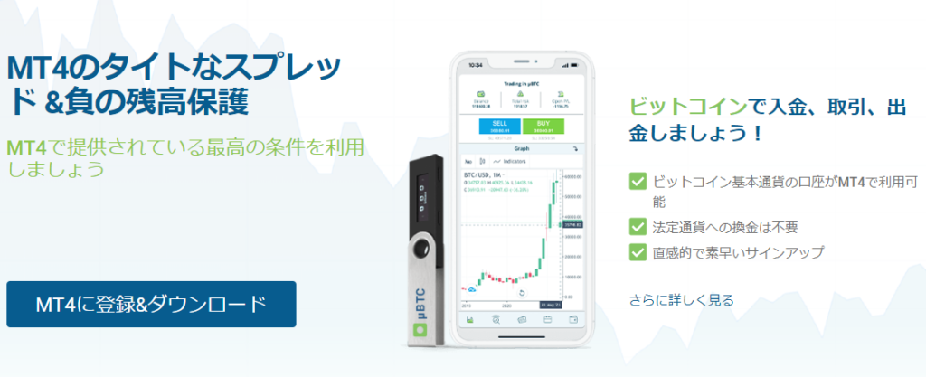 「10,000ドル(約1,400,000円)」の入金が必要になりますが、その分海外FX業界でも最狭クラスのスプレッドで取引可能です。