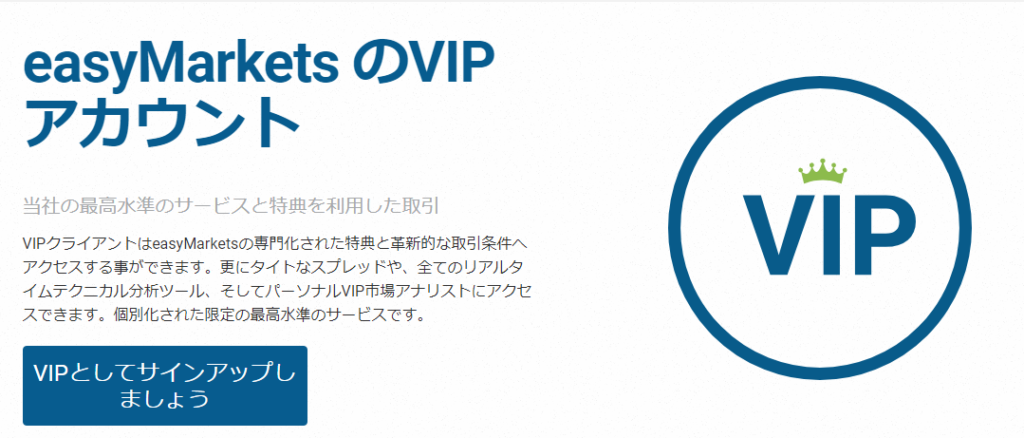 easyMarkets(イージーマーケット)の「VIP口座」の特徴を4つ紹介します。