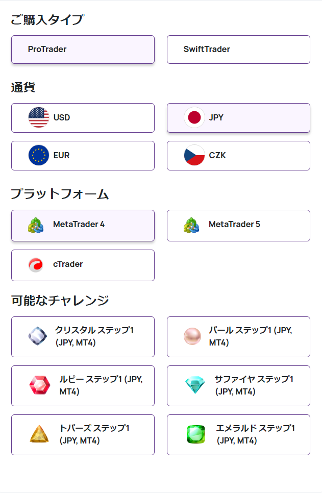 ご購入タイプチャレンジプランは「ProTrader」を選択