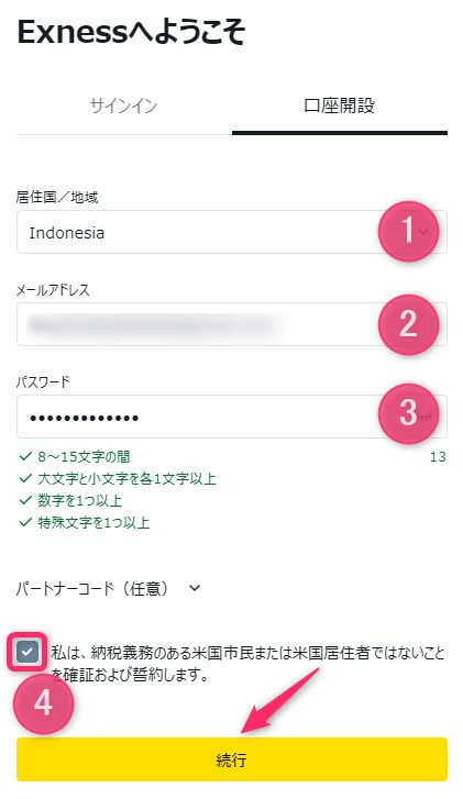 Exnesslで口座開設する手順