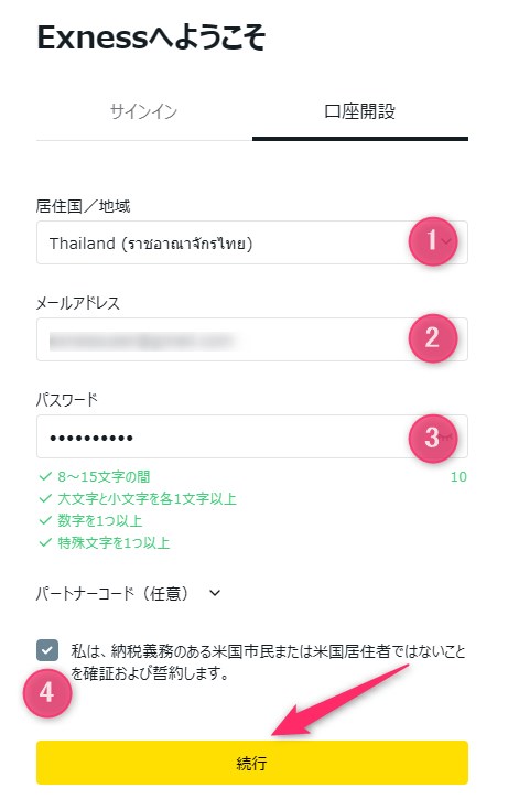 Exnessの口座開設手順
