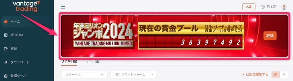 ![]() Vantage Tradingの詳細 | ユニークなコンテストを定期的に開催 口座開設ボーナスで大会準備をサポート | Vantage Trading 公式HP:vantagetradings.com |