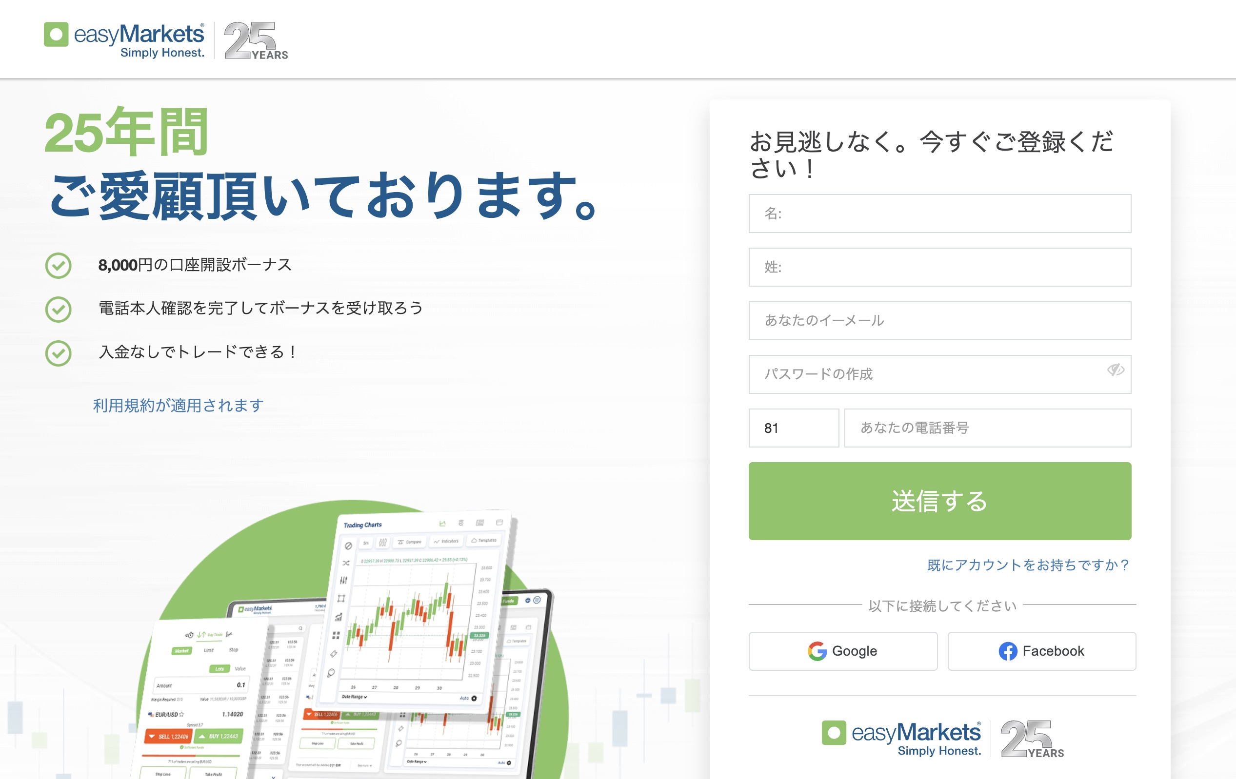 アカウントを開設して必要書類を提出するだけですぐにトレードを開始できます。