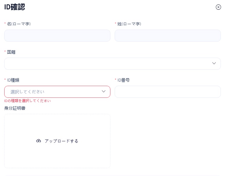 本人確認書類として利用できるのは、パスポート、マイナンバーカード、運転免許証のいずれかです。書類に記載された情報と同じ内容を入力・選択してください。