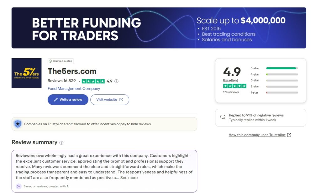 The5ersは2016年設立の老舗企業として、プロップファーム業界で抜群の安全性と信頼性を誇ります。