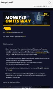 さらに、50万ドルのスケーリングを達成したトレーダーには10,000ドル(約140万円)の固定報酬が受け取れます。