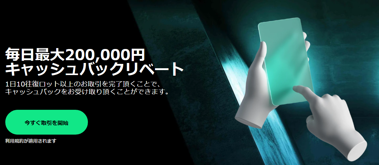 - 取引量に応じて翌営業日にキャッシュバック