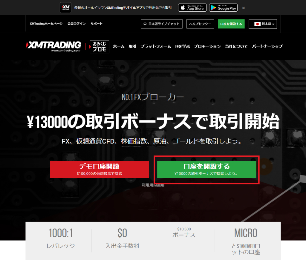 XMでは公式ホームページから口座開設を行うと、口座開設ボーナスとして13,000円分のクレジットを受け取ることができます。