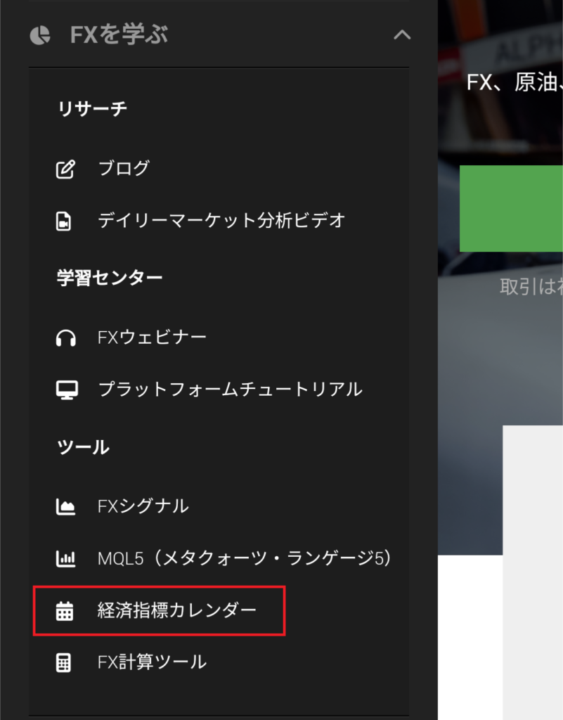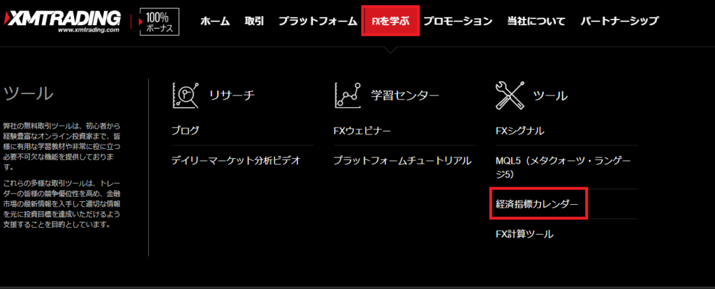 XMTradingで「経済指標カレンダー」を確認する方法は下記の通りです。