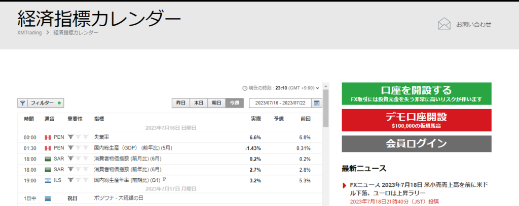 XMTrading(エックスエム)では、経済指標のタイミングを確認できる「経済指標カレンダー」を公開しています。