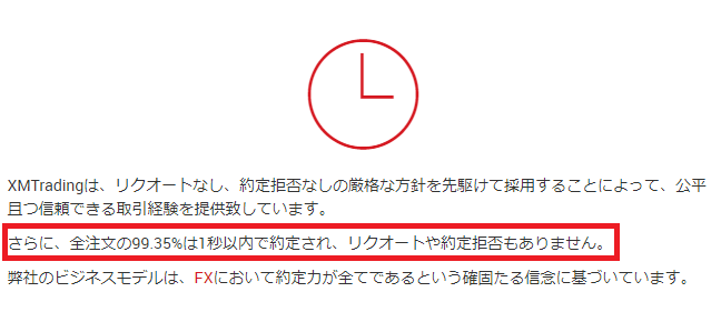 通常時は全注文の99.35%が1秒以内に約定され、リクオート(約定拒否)もありませんが、指標発表時など相場が急変動するとスリッページ・リクオート起こる可能性が高くなることを理解しておきましょう、