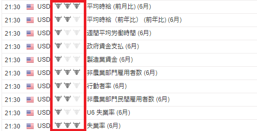 基本的に指標トレードは、重要度の高い経済指標を狙ってトレードするので、XMのカレンダーであれば牛マークが3つ、みんかぶであれば星5つの指標が発表されるタイミングで取引を行います。