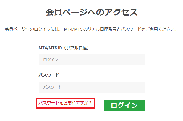 「会員ページへアクセス」の画面下部の「パスワードをお忘れですか?」を選択します。