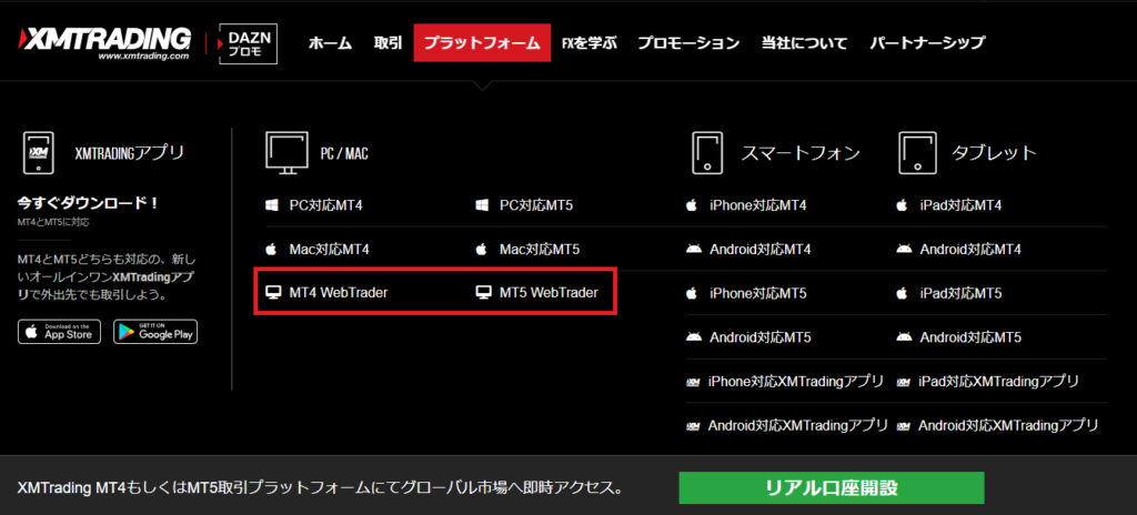 「会員ページ」と「XMアプリ」へのログインは、リアル口座を開設している場合のみ可能です。