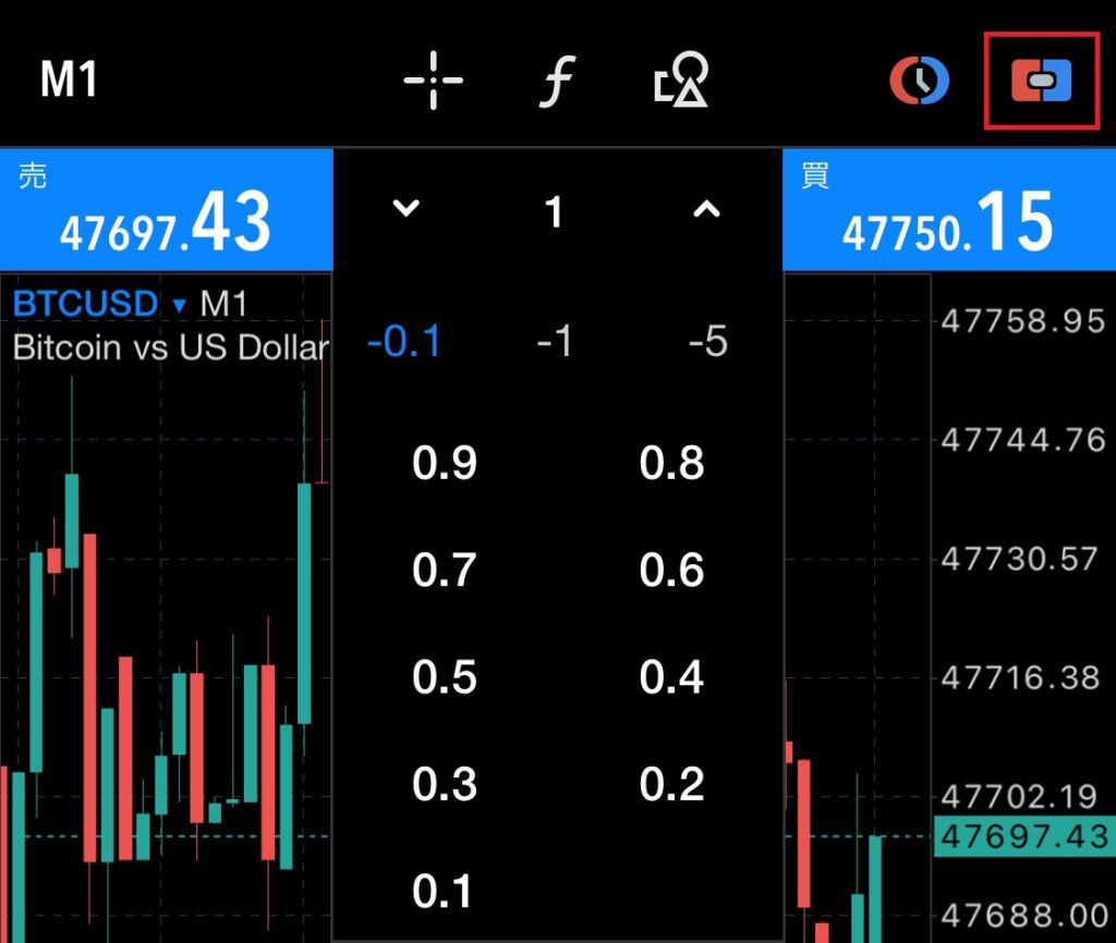 左右の「±0.1・0.5」をタップまたは直接数字を入力することでロット数を変更可能です。