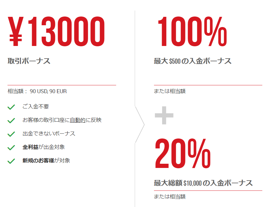 XMTradingでは新規口座開設をするだけで取引に使える13,000円分のボーナスを配布中!